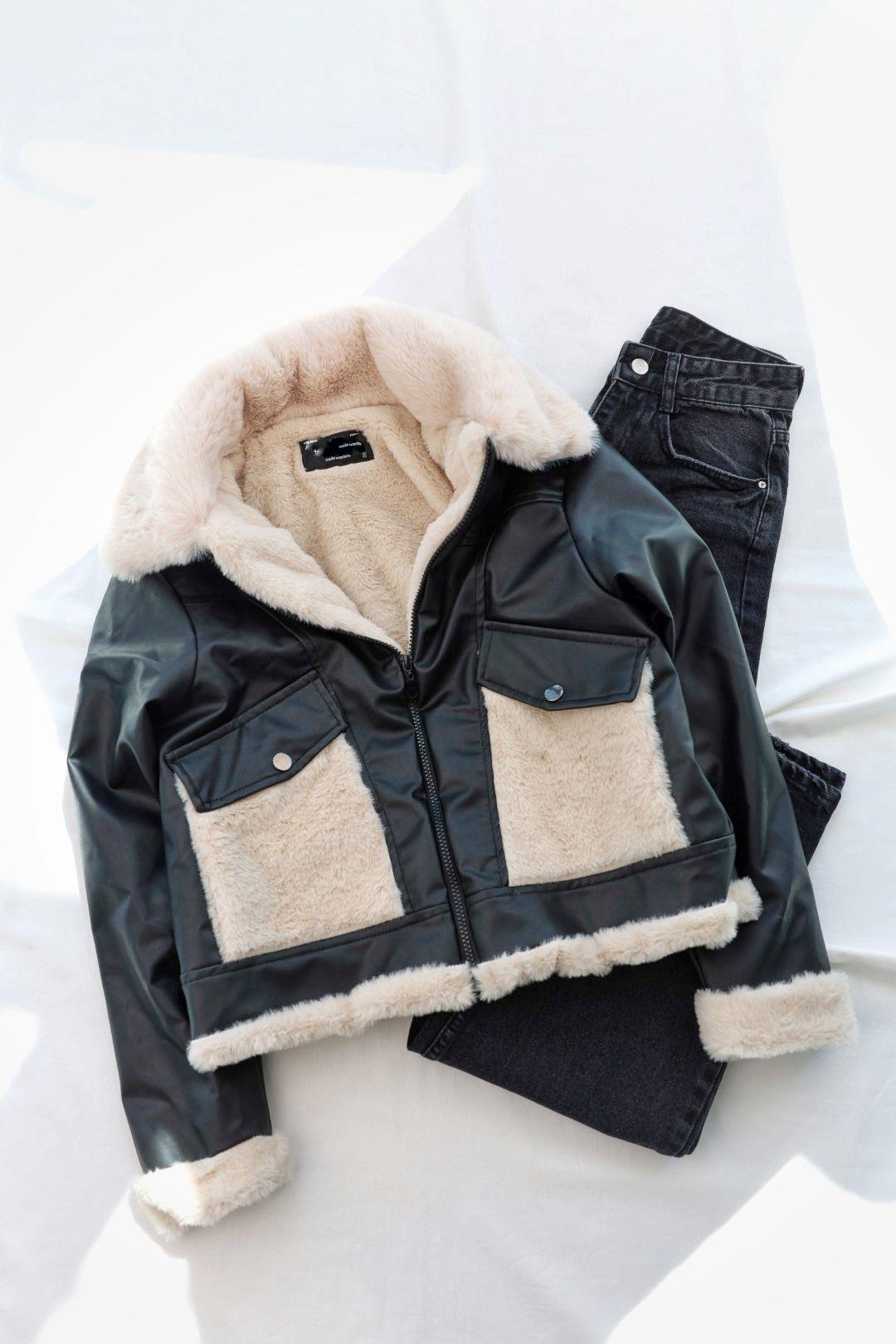 Cepli Peluş Deri Ceket