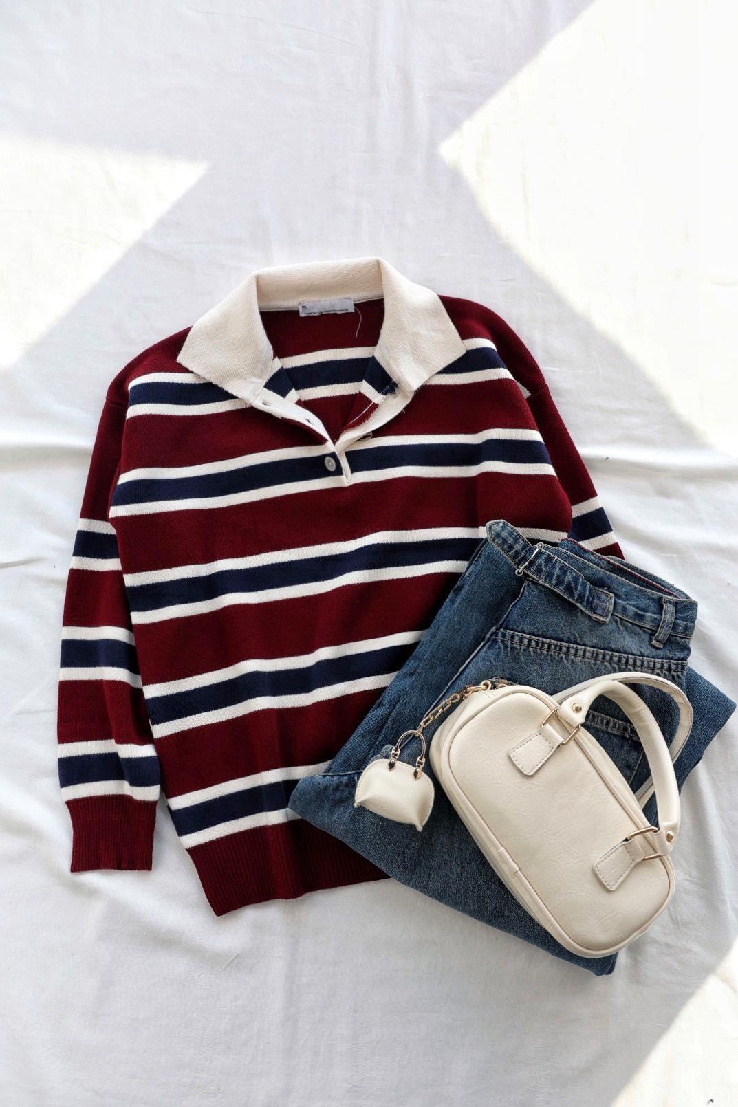 Ürün Bilgisi: Sportif şıklığı yakalayın! Bordo, lacivert ve beyaz çizgili, polo yaka detaylı bu triko kazak, konforlu kesimiyle günlük stilinize dinamik bir dokunuş katacak. Yüksek bel jean pantolonlarla mükemmel uyumu yakalayın. (Yumuşak triko kumaştan üretilmiştir)