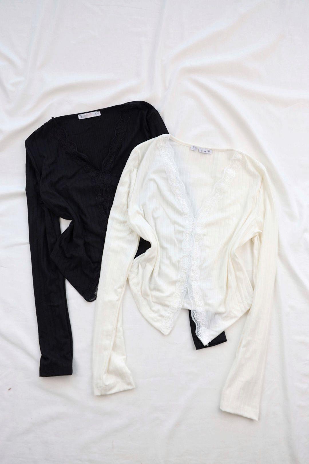 Ürün Bilgisi: Romantik detaylarla modern bir görünüm. İnce ve esnek kumaştan üretilmiş, ön kısmı dantel detaylı, V yaka ve uzun kollu bu crop bluz, katmanlı veya tek başına kullanıma uygundur. Siyah ve beyaz renk seçenekleriyle her kombine kolayca adapte olur. (Not: Ürünler tekli satılmaktadır. Fiyat ve stok bilgisi için renk seçeneğini kontrol ediniz.)