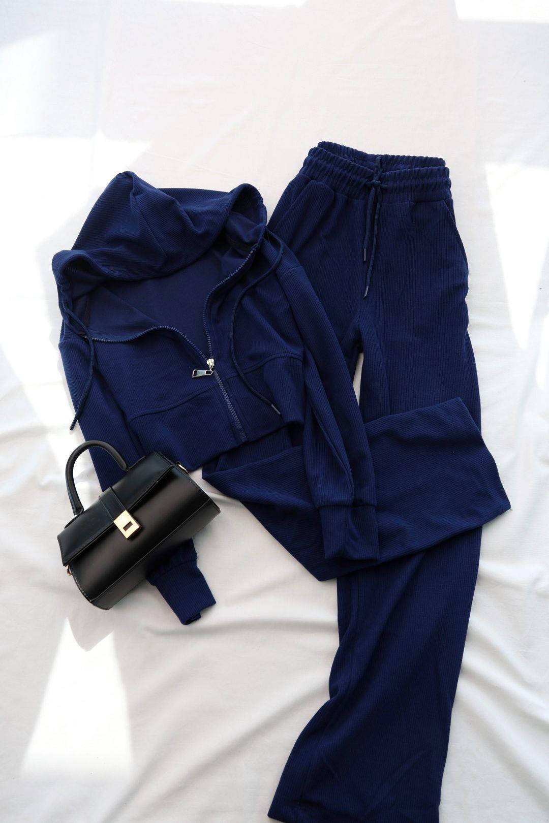 Fermuarlı Kapşonlu Selanik Pantolon Takım