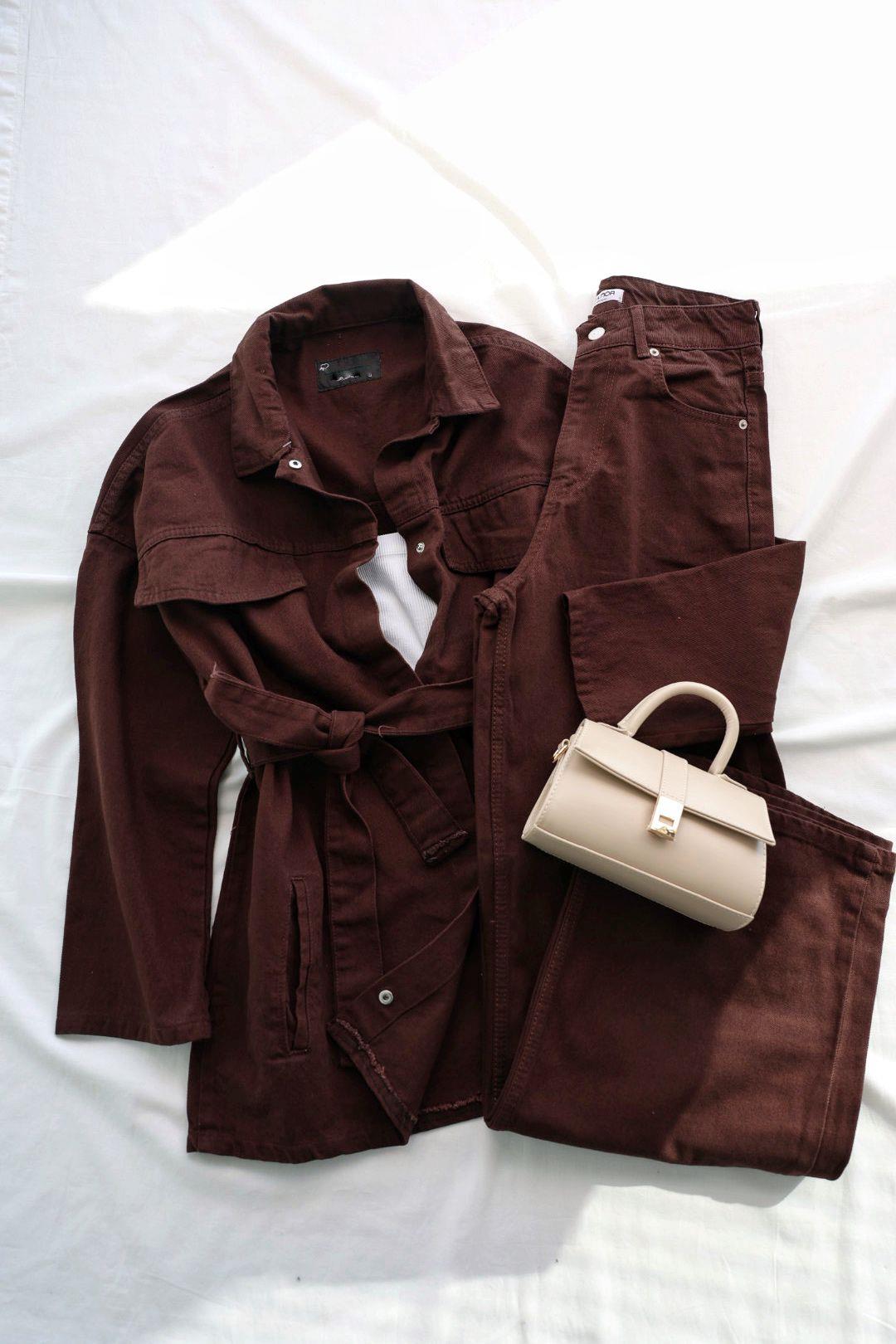 Ürün Bilgisi: Mevsimlik şıklığın anahtarı: Sonbahar/kış tonlarının derinliğine sahip, mevsimlik denim ceket takım, Kemer detayı sayesinde beli vurgulayabilir veya ceketi açık bırakarak daha salaş bir görünüm elde edebilirsiniz. Geniş yakası ve büyük cepleri ile fonksiyonellik sunar. Monokrom kombinler veya açık renk kontrastları için idealdir.