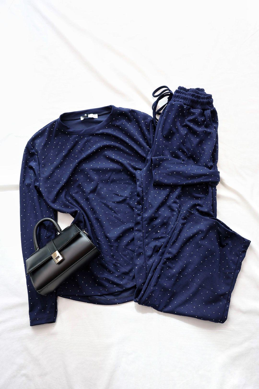 Ürün Bilgisi: Gündüzden geceye zahmetsiz şıklık arayanlar için ideal. Renkleri ve zarif taş deseniyle dikkat çeken, yumuşak kumaşlı bu ikili takım (uzun kollu üst ve rahat kesim pantolon), hem evde hem dışarıda üst düzey konfor sunuyor. Pantolon cepli ve bel lastikli olup yüksek beldir.